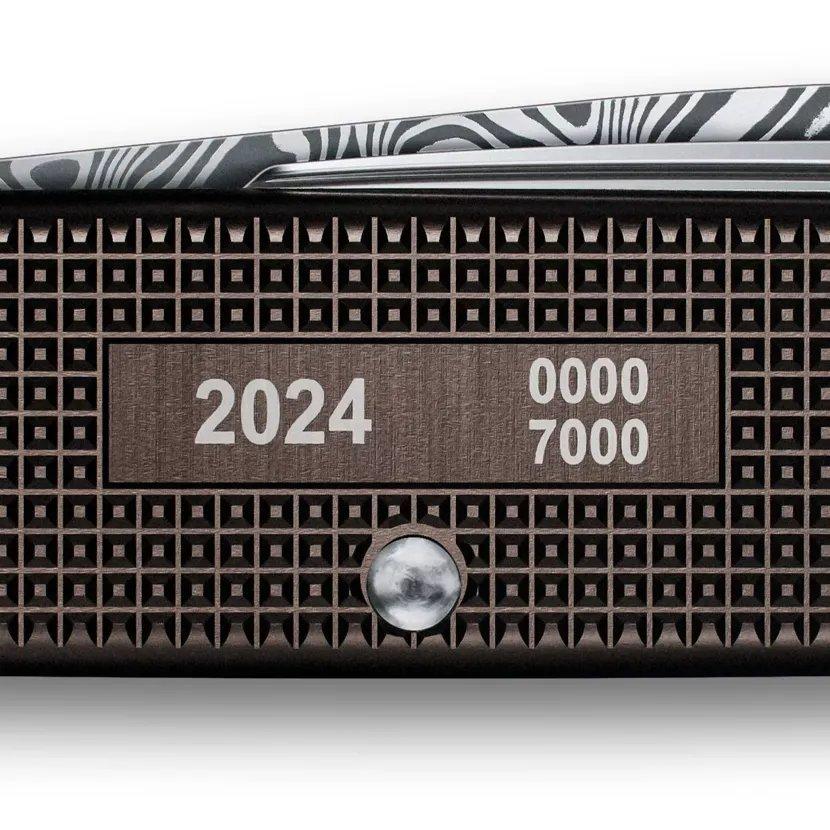 The 15th addition to Victorinox's annual Damast Limited Edition collection has arrived! This unique pocket knife, made from 115-layer Damasteel with a stunning Hakkapella pattern, is a true collector's item. The Farmer X features dark brown Alox scales, exclusively designed for 2024, and is limited to only 7,000 pieces worldwide. Each knife is numbered and the year of release is engraved on the right scale. This edition comes in a luxury display box with a viewing window and a luxurious interior.